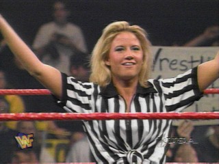 sunny91.jpg- Coming down the aisle to referee a match* 13KB